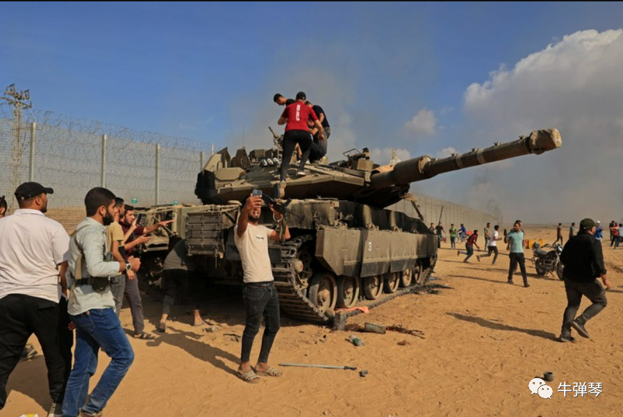 3,视频更显示,一辆以军坦克熊熊燃烧,受伤的坦克兵被哈马斯战士揪出,还有以色列姑娘被带走的画面,场面非常血腥。据称至少数十名以军士兵被俘,包括以军少将,前所未有。