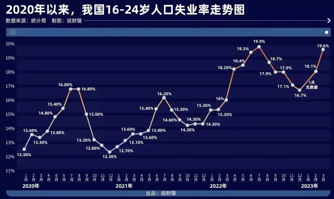 于是,我们可以看到,在制造业遭受不确定的背景下,我们的年轻人失业率创6个月来新高。
