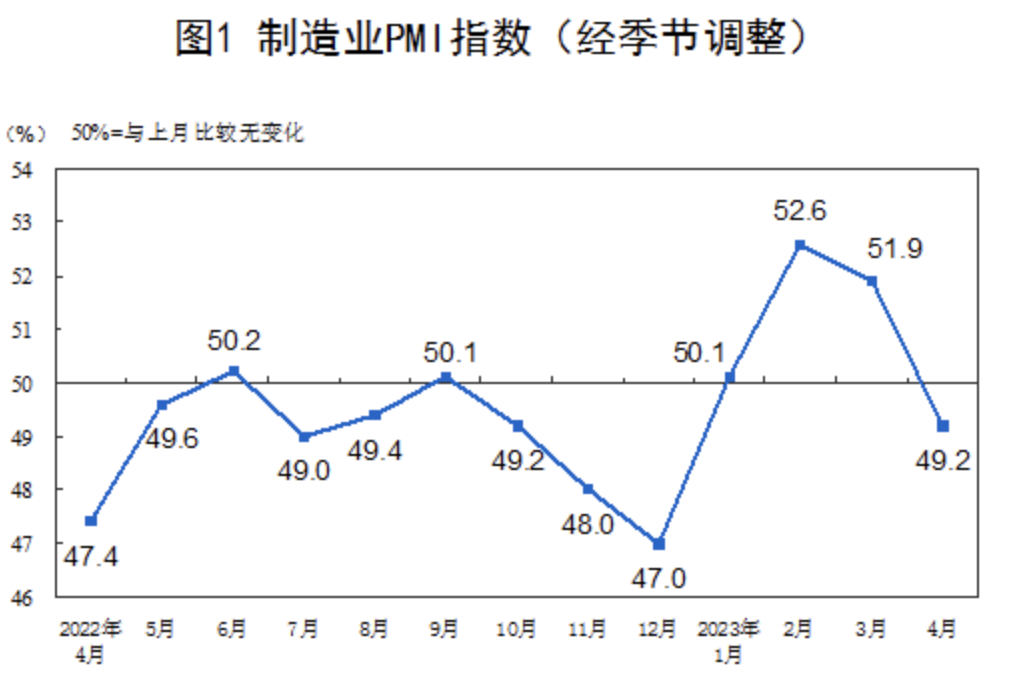 国家统计局公布的4月份最新制造业PMI指数回落至荣枯线以下。