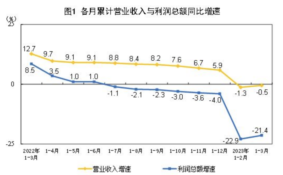 但是, 很大程度上是压低工业生产品出厂价格,牺牲利润的结果。我们可以看到,进入今年之后,工业利润在原本就下跌的趋势之下,突然跳水,3月份跌幅虽然有所收窄,但相比于过往跌幅仍非常大。