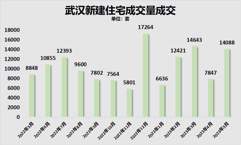 而5月份,根据武汉市住建局官方数据显示,新房成交了14088套,环比上涨88.17%,已逼近3月份的成交量