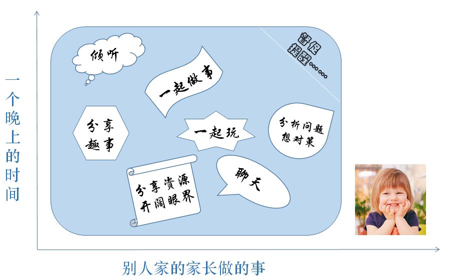 家长每晚上和孩子的沟通中,倾听、轻松的聊天,应该远远多于指令、批评、说教、催促。前者不是可有可无,是连接,是建立互相的了解和信任,是给亲子关系账户存款,是一切教育的基础。没有这个基础,一晚上只是要求、批评,孩子不仅做不到,而且会离你越来越远。