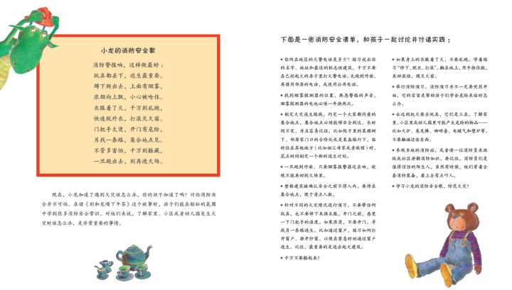 这套书在故事性和安全教育之前取得了很好的平衡。故事的主人公是一只龙和一个小女孩,在遇到一些突发情况的时候,龙代表的是错误反应,小女孩则会阻止龙的行动,并表现出正确的回应。