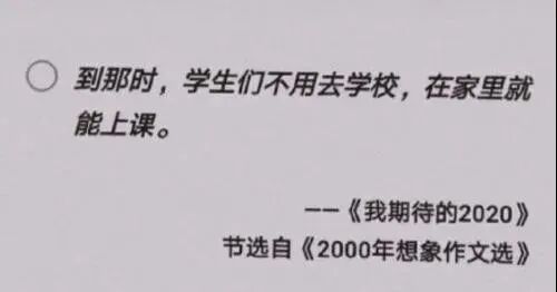 千禧年间,想象作文一等奖《我期待的2020年》中有这样一句话: