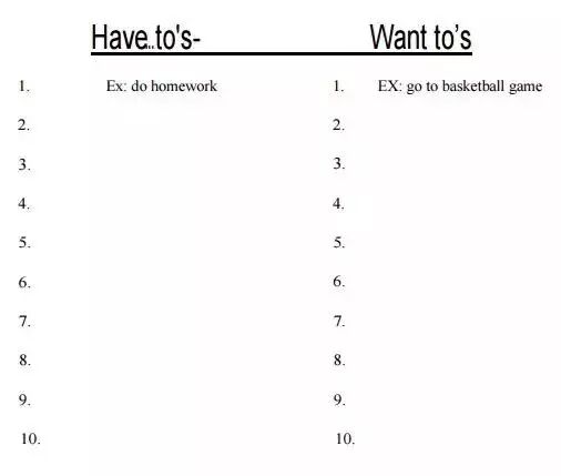 第一个表格,我们让孩子分别列出“必须要做”和“想做的”事情: