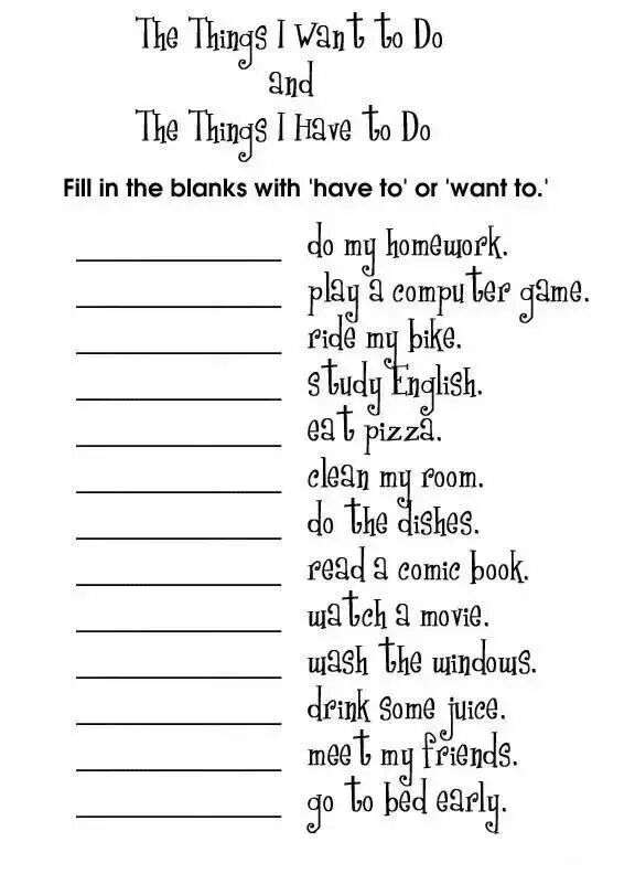 我们还可以将一天之内所有的事情都列出来,让孩子区分哪些是“必须做的”,哪些是他“想做的”: