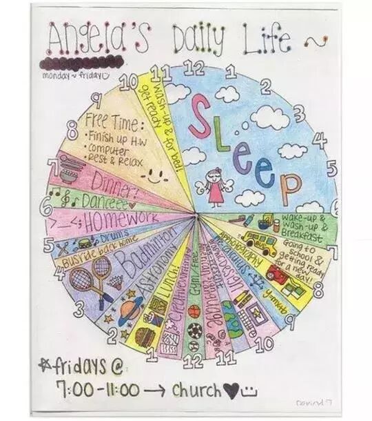 一天只有24个小时,做一件事需要多长时间?孩子们要对时间进行分配。让孩子画一个圆圈,等分为24分,然后将自己要做的事件都分配在表格中吧。
