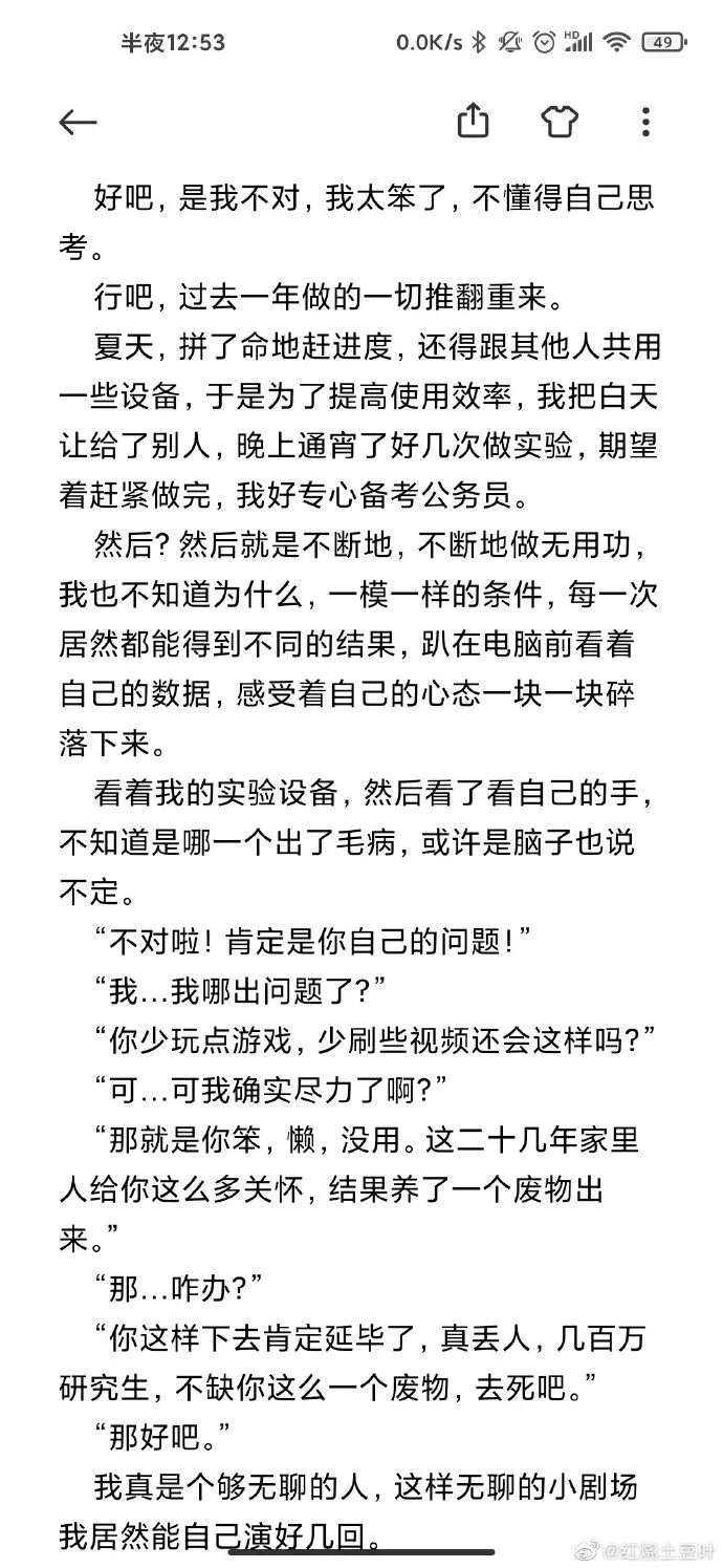 前几日,大连理工大学一位化工工程专业的硕士研究生,在微博上发布了长篇告别信后,在实验室里自杀了。