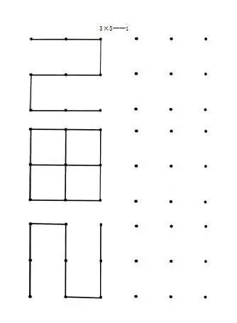 这种方法中,我们只需要给孩子提供一张带有点阵的纸就可以,纸上的点阵保持横竖间隔相同,孩子可以通过将点连线的方式,画出不同的数字和字母,像「田」这样方方正正的汉字也可以。