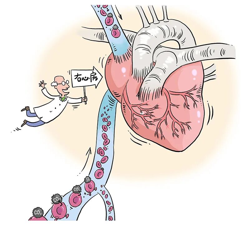 刚送完货的同伴们,带着二氧化碳,马不停蹄地沿着血管回流,再次回到心脏,并为下一单快递配送做准备。