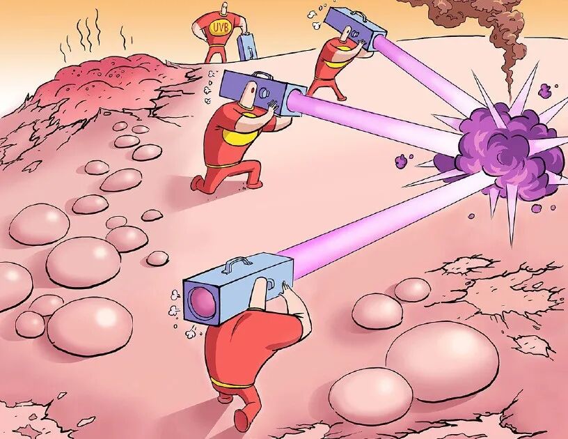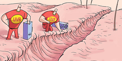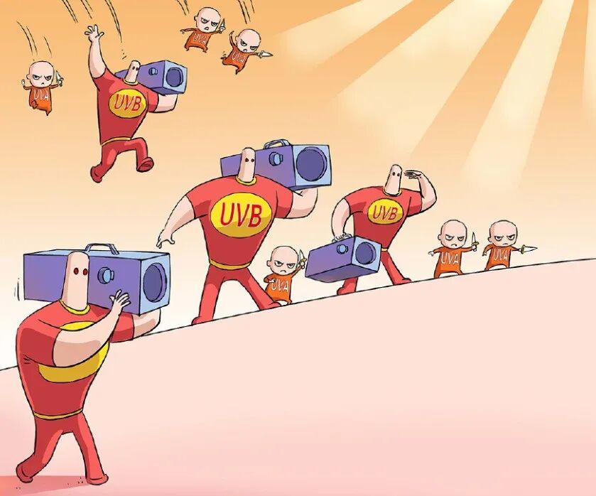 UVB率先和表皮层皮肤短兵相接,突破毛细血管防线,让人晒红、脱皮、晒伤。