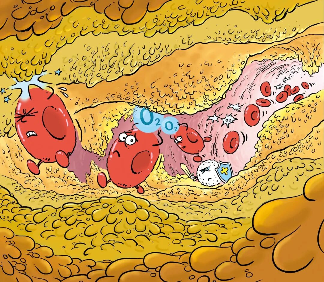 这些“违建物”越来越多,逐渐造成血管拥堵。红细胞等原住民只能冲破重重阻挠通行,或者干脆改道而行。