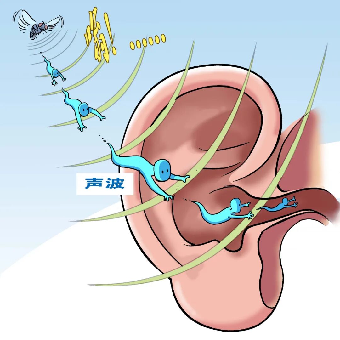 人之所以能判断苍蝇方位,是因为苍蝇快速煽动翅膀会带动周围空气振动,产生阵阵声波,虽然微弱,却还是能被耳廓敏锐地捕捉到。