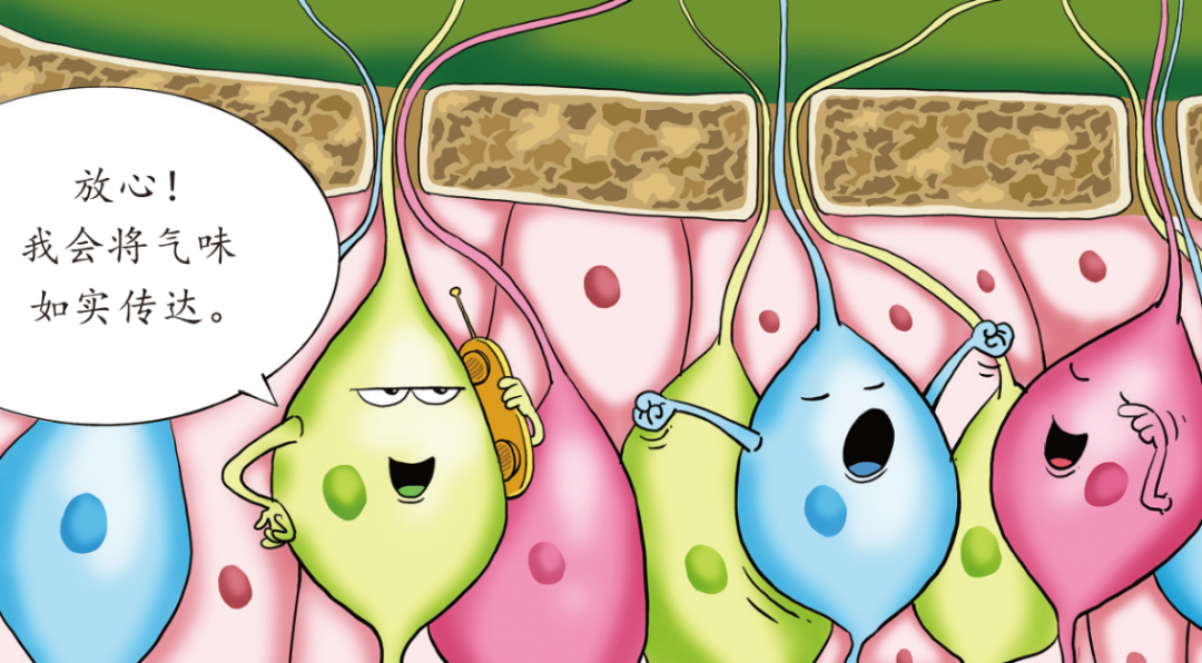 嗅区黏膜中埋着许多嗅细胞的“触手”——嗅纤毛,其表面有受体蛋白。当气味分子找到完美契合的受体蛋白后,嗅细胞便会被“唤醒”。