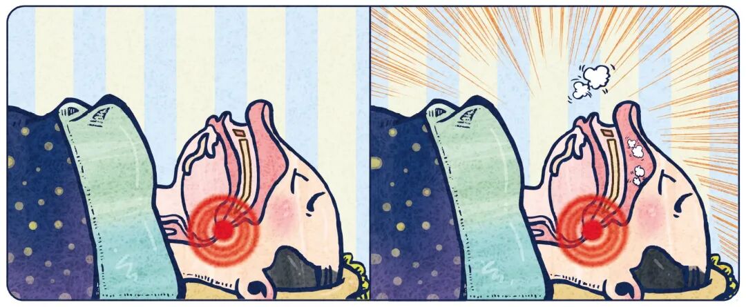 由于呼吸道过于狭窄,空气通过时不得不在呼吸道内“横冲直撞”,造成呼吸道的软组织震动,进而产生了呼噜声。