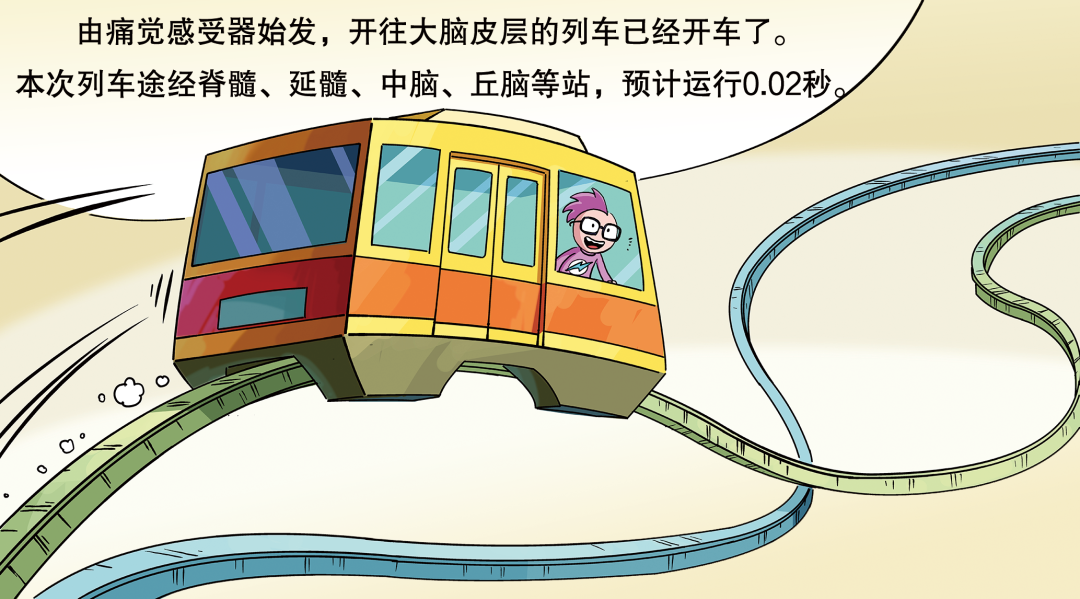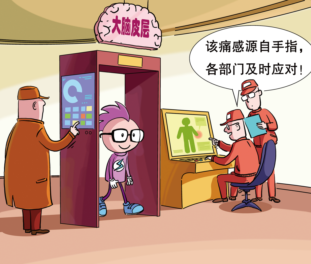 当乘客抵达大脑皮层终点站,解码员脑细胞会对它的来源进行追踪定位,形成痛觉和情绪反应。