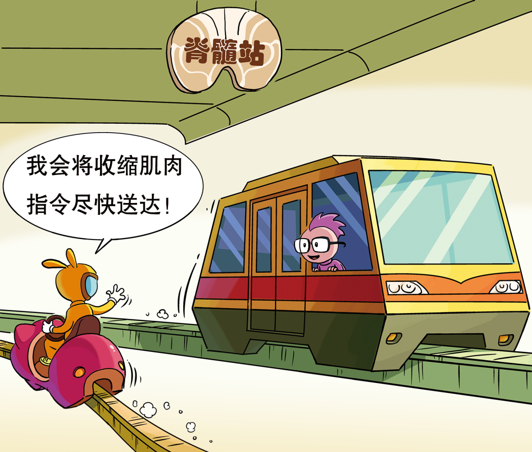 当乘客到达脊髓区域时,脊髓会立即产生另一种信号。沿着脊髓传出神经(运动神经),传导回引起疼痛的部位,触发肌肉收缩。