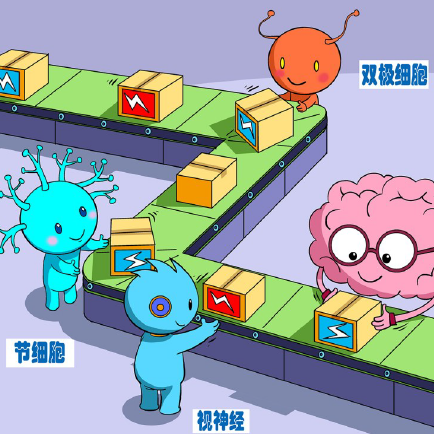 加工好的神经电信号被依次传递给双极细胞、节细胞、视神经、大脑。