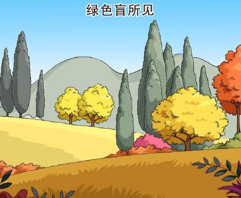 由于绿色视锥细胞存在缺陷,绿色盲会将绿色看成灰色或黑色,万物都有一种“褪色感”,尤其绿色和红色的对比会降低。