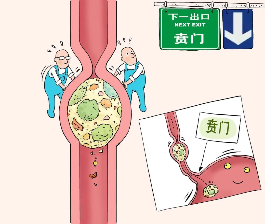 每到一处,食管壁肌肉就会舒张打开,只要食物糊糊一通过,肌肉就又立刻收缩,切断“后路”,使它们只能顺着食管涌向胃的入口——贲门。