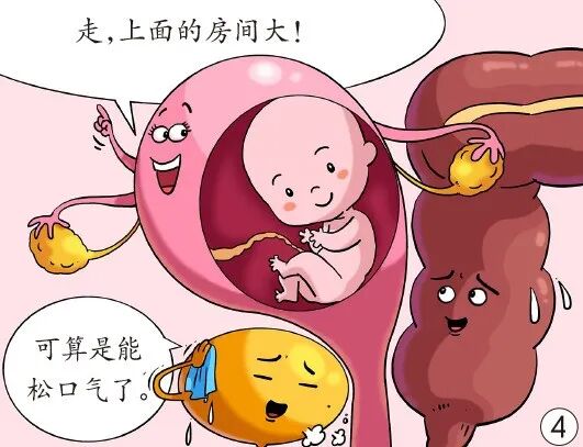 临近分娩时,胎儿位置下移,其头部进入盆腔的入口,横膈膜得到些许“解放”,孕妇终于能够深呼吸,胃胀的症状也减轻了不少,但膀胱和直肠再次迎来了压迫,压力比之前更甚,尿频、排便困难等症状重新来袭。