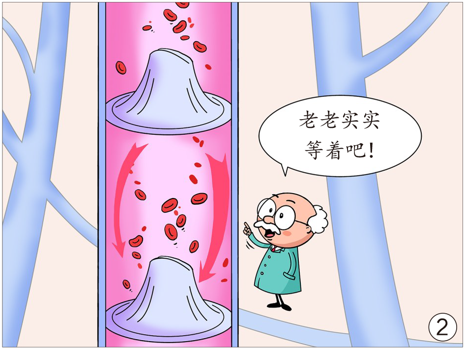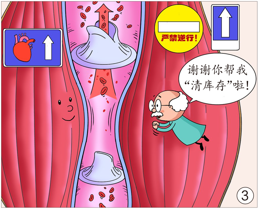为了防止储存的血液在重力作用下倒流,四肢静脉的内皮会向内凸出,形成一个个阀门(静脉瓣),内含弹性纤维,可以自由开合,但只开设了向心流动的单行道。