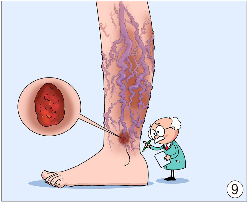 从脚踝处的静脉开始,一个个静脉瓣相继沦陷,曲张血管向周围和上方蔓延。老师、外科医生、护士、理发师、厨师、餐厅服务员等通常需要长时间站立,是下肢静脉曲张的高危人群。
