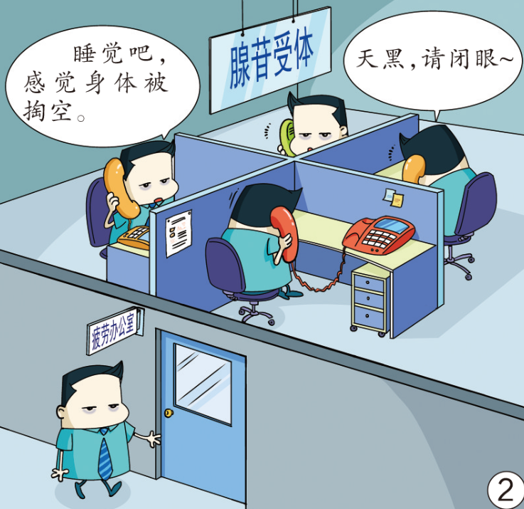 人体有个“疲劳办公室”,“员工”腺苷会在名为腺苷受体的“工位”前,给大脑发送疲劳信号。