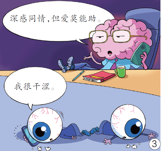 时间一长,眼睛表面的角膜就会因眨眼减少而变得干涩,于是就会给大脑传输信号。