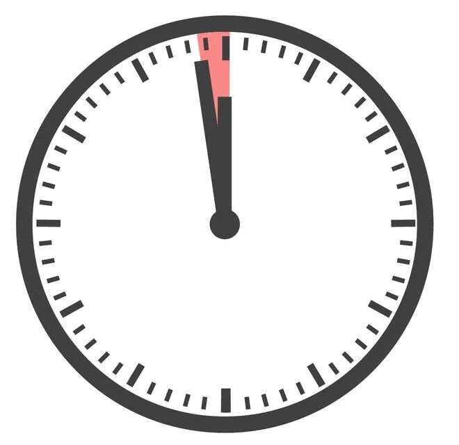 初始时刻设定为 23:53(seven minutes to midnight)。