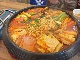 *部队锅(韩语:부대찌개,budae jjigae)是类似西式杂锅的韩国浓汤火锅。源于1950年代朝鲜战争过后的议政府市,当时该处设置了许多驻韩美军设施以保护不远的首尔。(维基百科)