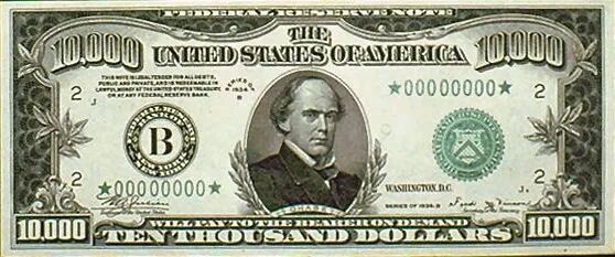 To honor Chase for introducing the modern system of banknotes, he was depicted on the $10,000 bill printed from 1928 to 1946. Chase was instrumental in placing the phrase "In God We Trust" on United States coins in 1864.