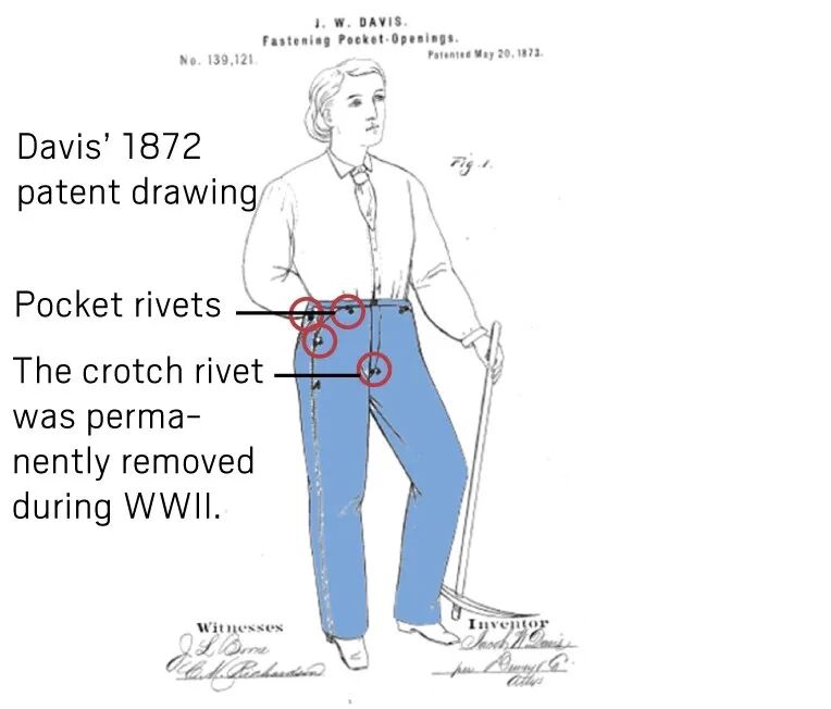 Levi Straus and Jacob Davis patented the first blue jeans with copper rivets.