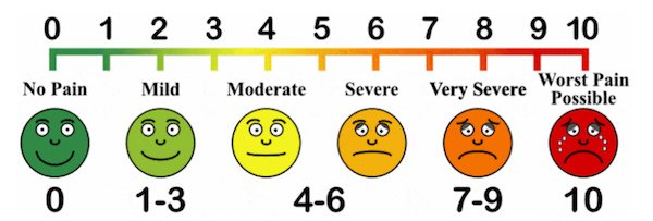 如何衡量疼痛的程度有科学的体系,称为pain scale.