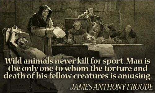 Animals kill for food. Only human beings kill for pleasure. Torture is tenfold vicious and cruel as killing.