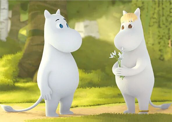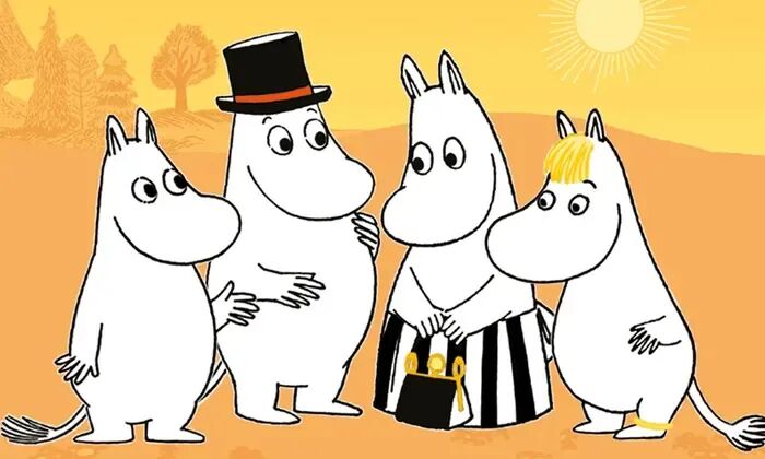 这群看起来像河马(hippopotamuses)的卡通形象统称姆明(the Moomins)。
