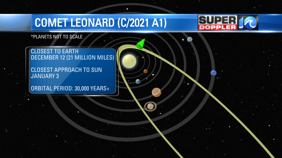 • Given its current magnitude, C/2021 A1 (Leonard) is easily visible with the help of a small binocular.