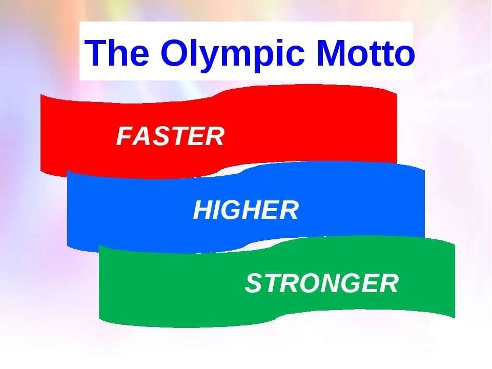 奥运会口号:Faster, Higher, Stronger. 更快,更高,更强。听着就有活力有没有?