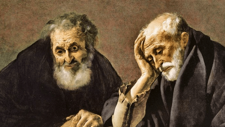 老赫据说罹患忧郁症(melancholia),大概是一种比现代抑郁症轻的症状,反正就是不想理人,不喜欢跟人来往,时间长了发展到了厌世(misanthrope)的程度,因此常被称为“啜泣的哲学家”(the weeping philosopher.)