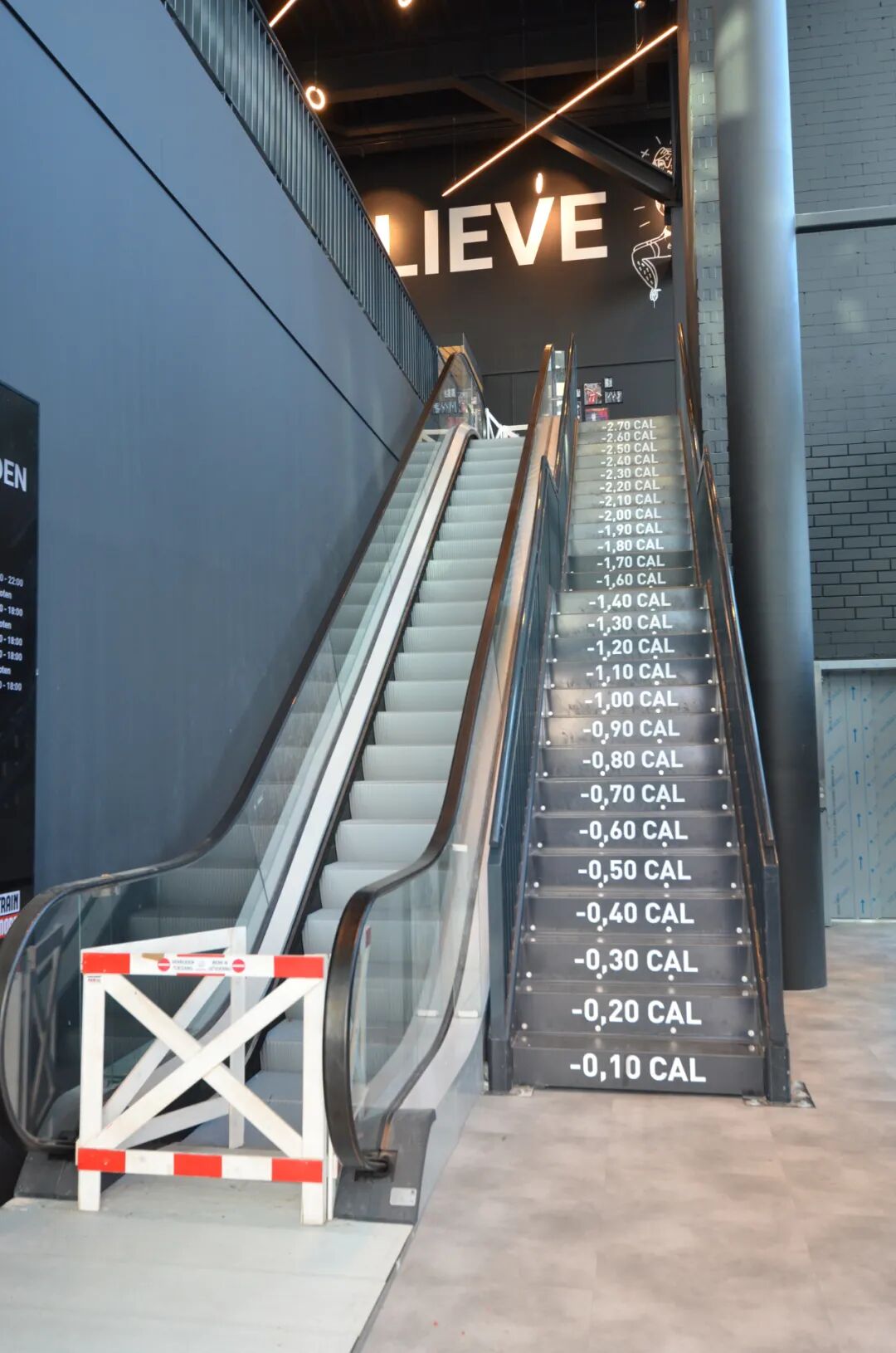 据说台阶上标注的减少卡路里数字能激发人们走楼梯的愿望。