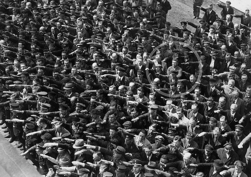 照片中圈圈里那个人看到了吗?所有人都在行纳粹礼,只有他抱着肩膀站在人群中冷笑。