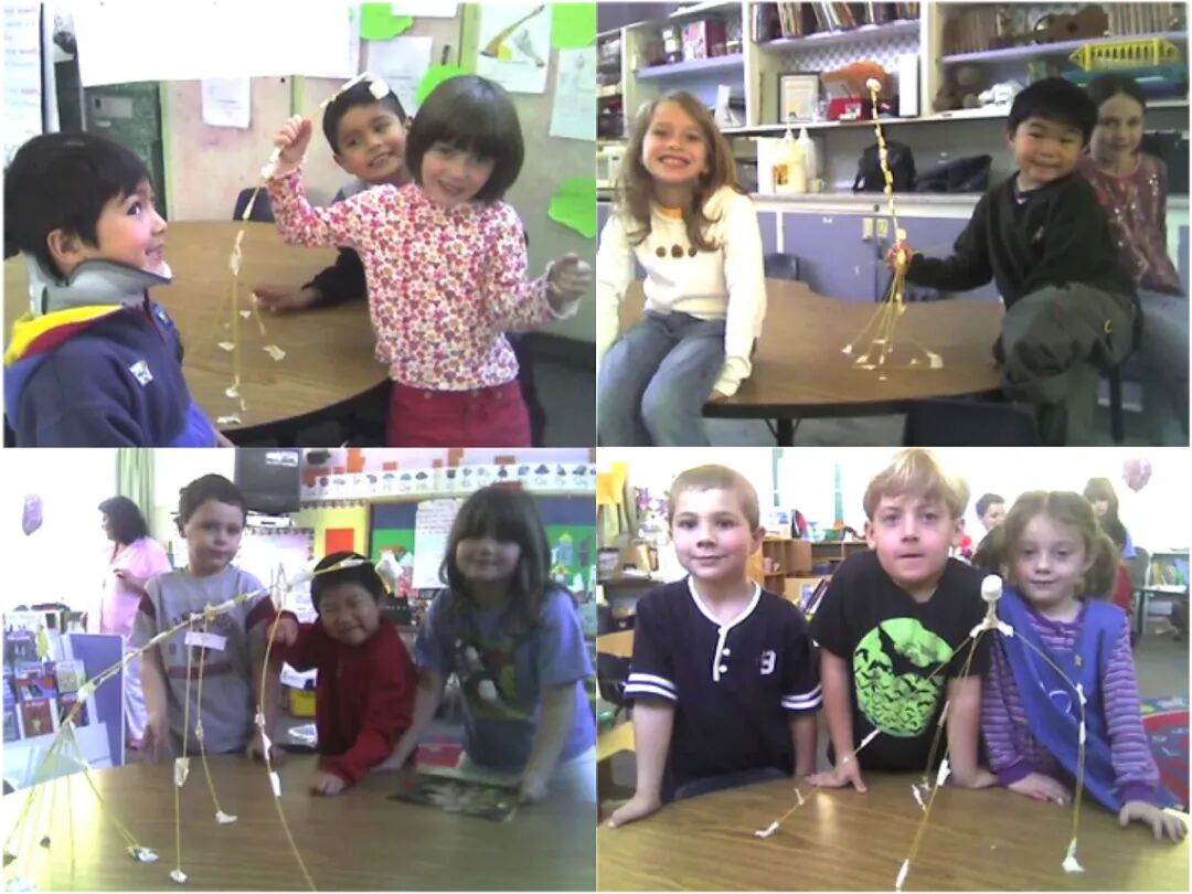 Their task is to build a structure by using spaghetti, masking tap, some string and with marshmallow on the top.