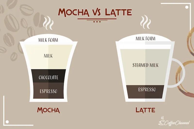 latte,为什么这么说呢?因为所谓摩卡咖啡,就是一份意大利浓缩咖啡(espresso)打底,然后加巧克力粉或糖浆,然后再加牛奶或奶油(a
