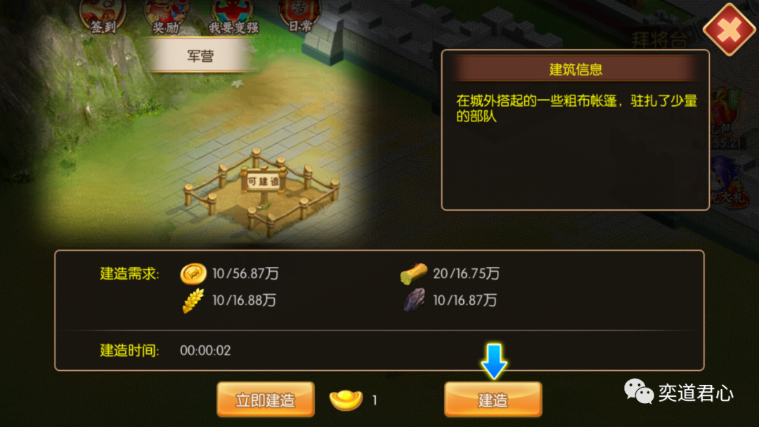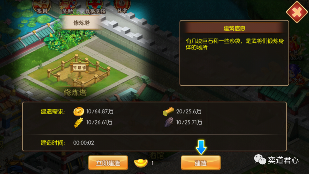 当我们解决了基本的生存问题,才有闲下来的钱发展军事力量。军营负责征募兵士,修炼塔则是武将们提升修为的地方,他们都离不开太学院的支撑。科技既是第一生产力,同时也是第一战斗力,否则手底下的将领们再强都没有用武之地。