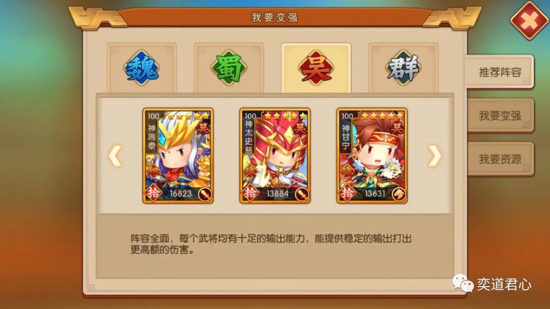 主打Q萌画风的休闲策略手游【萌军天下】还是挺给东吴军队留面子的,尽管江东孙氏政权在陆战领域沦为了三国迷们的笑柄,可也不能完全抹杀人家的猛将嘛。神周泰+神太史慈+神甘宁这个组合,可谓把吴国最能打的三个男人凑到一起,他们是吴军步骑最闪亮的招牌。