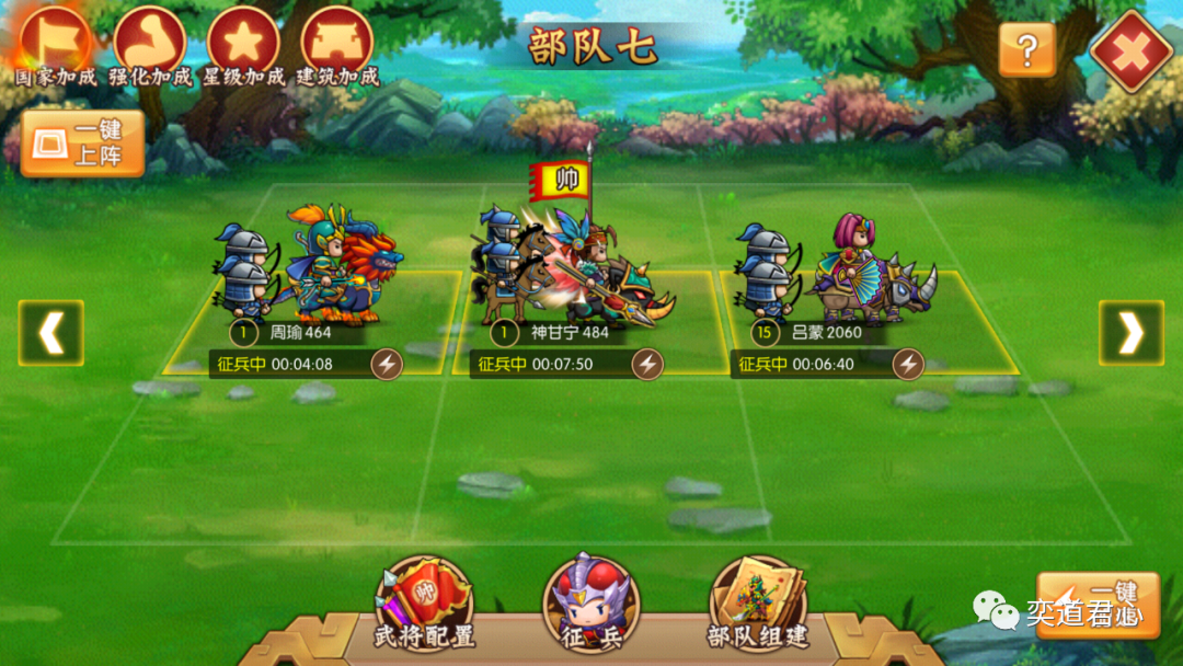 【萌军天下】的周瑜和吕蒙都比较善于群体削弱和控制,再加上神甘宁的眩晕,开荒打野几乎不损兵。先把神甘宁培养起来,等抽到了神周泰和神太史慈,队伍快速形成战力的所需周期就很短了。需要体验游戏的朋友,点击下面的【阅读原文】就可以下载啦。