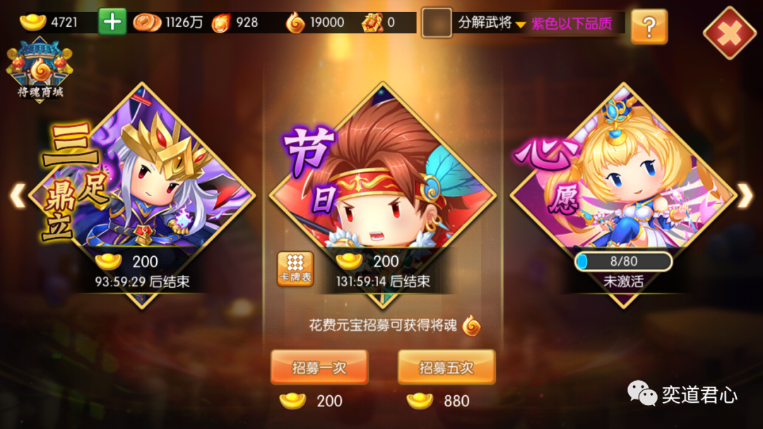 个人感觉这支战队的最核心人物还是甘宁,他的场控技能也可以轻松带起其他武将组合。建议各位朋友在【萌军天下】里常去酒馆坐坐,碰上专属的节日活动是很容易抽到神将的。好巧不巧,今天写这篇文章的时候我就抽到了神甘宁,即便没有入手其他两人,先安排周瑜和吕蒙拼凑一下也很不错。