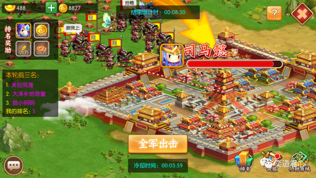 作为游戏里的日常活动,猛将挑战玩法每天都会开启三次,每次玩家们都有20分钟的时间向驻守在城内猛将发起围攻。一轮围攻就会自动倾巢派出自己军营中的全部现役部队,所以我们的常规军团数量也要尽可能的多,人海战术的意义就在于此了。部队的质量固然是重要的,但是打群架的时候,数量本身就是一种质量,斯大林同志诚不欺我。