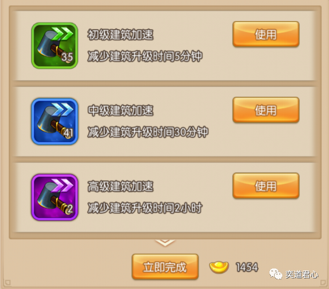 等级越高的修炼塔,每次建筑升级所需要的时间也会更长。除了用元宝来缩短时间,消耗初级、中级、高级的建筑加速道具同样省时省力。这些提速的道具既可以在商店购得,还能通过各种开荒打野和副本挑战积攒,【萌军天下】这款手游总体是走亲民路线的,很多事情的解决方式都可以找到不伤腰包的方案。