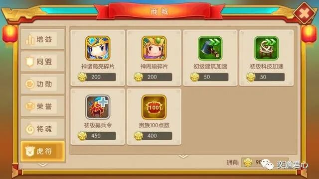 目前虎符商店里可以兑换的最贵重物品,就是神诸葛亮和神周瑜的武将碎片。作为蜀汉和孙吴阵营的头号军师,能尽早把他俩请出来,自己在游戏里的战力提升就事半功倍了。本文的分享就到这里,谢谢各位长期的关注和支持。需要体验游戏的朋友,点击下面的【阅读原文】就可以下载啦。